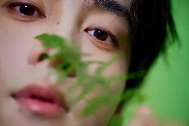 更动人的,是这组片子里,他对东方绅士气质的精准诠释,以及完全不紧绷的松弛感。整组片子没有用奢华的欧式布景,没有打光到毫无瑕疵的纯白影棚,反而用了朦胧的青绿色背景,垂坠的蕨类植物若隐若现,像水墨丹青里的写意留白,自带一种清雅的东方禅意。